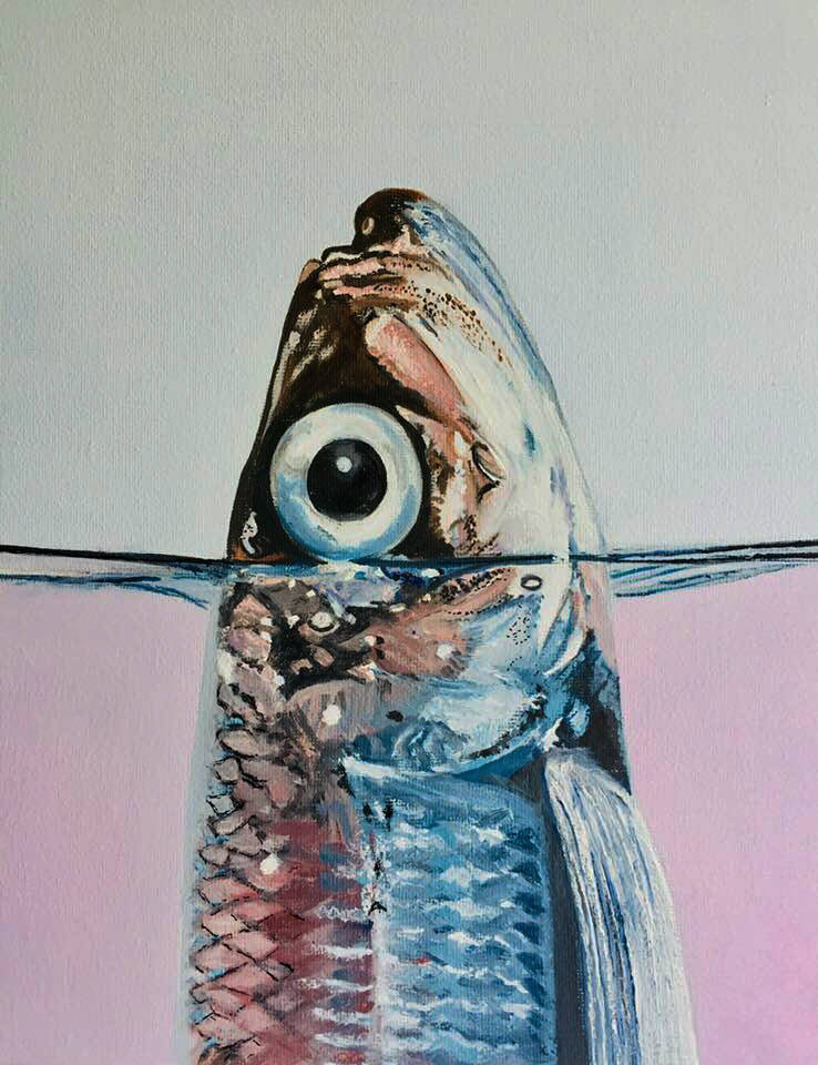 Afmeting 30 cm x 40 cm. Gemengde techniek: acryl en olieverf. Opgespannen op spieraam.